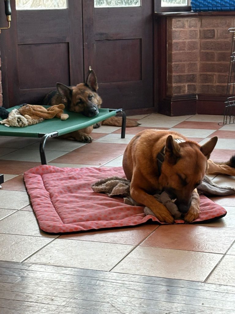 Hope has been with us for several months now, and has been on a journey of confidence building and finding herself again – in kennels she progressed slowly, after weeks of encouragement finally letting us stroke her, take her for walks, and take food from hand. She took so much confidence from the other kennel dogs, and the first time we saw her wag her tail, was when seeing her dog friends